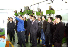 在姜董事長、陸總經(jīng)理、鄭總工程師等的陪同下,專家教授參觀了生產(chǎn)車間。